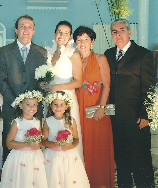Olá gente amiga! Hoje vou dar início por aqui a uma série muito bacana dedicada às noivas. Pretendo postar algumas fotos de casamentos de amigas queridas e lindas para que vocês possam ter como fonte de inspiração o estilo da festa, as makes, os cabelos e, principalmente, os vestidos. Olha, eu posso aqui adiantar...eu tenho só amiga linda! As festas, nem te conto...só vendo para crer, um espetáculo. Bom, estava eu cá com meus botões pensando em quem iria inaugurar esse minha série quando, de repente, me veio o estalo: eu hahahahaha! A minha festa foi realizada na casa de veraneio dos meus pais (linda por sinal!), ou seja, uma proposta bem descontraída e mais simples. Me casei no dia 2 de fevereiro de 2007 e, no dia, fazia um calorão!! O buffet, decoração, iluminação foram executados por Vera Sueth (Grupo Sueth). O bolo e os doces foram executados pela Maria Ilza. O meu vestido foi feito pela Marilene Saldanha (aqui de Campos) e a mini tiara de flores colocada para adornar a cabeça foi confeccionada por D. Maria Augusta (Rio de Janeiro) . O vestido das daminhas foi feito pela Quitéria de Goytacazes. Não faltou chuvisco (hahahaha), gente animada e muita emoção!! Vamos conferir??